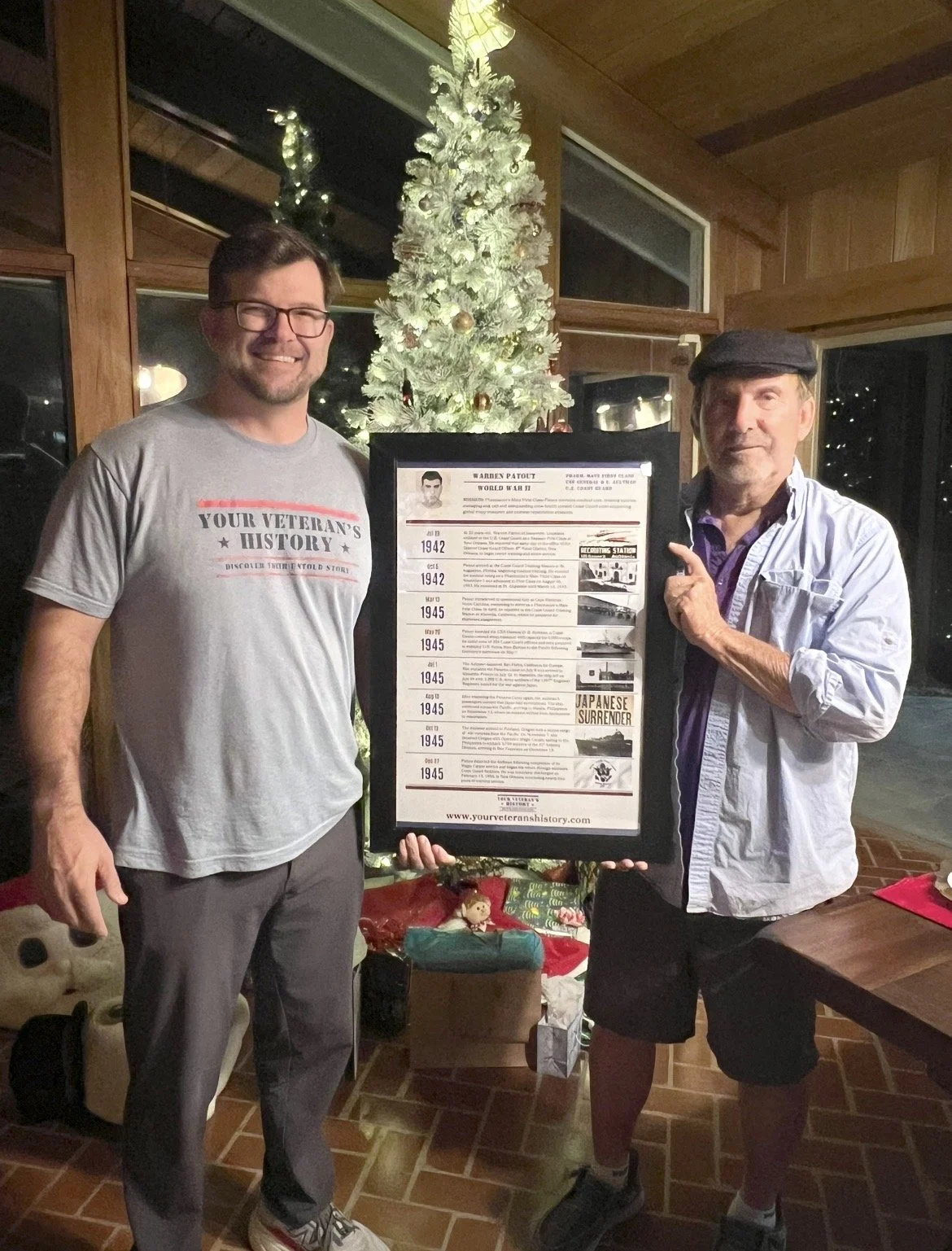 Mark Patout (right) grew up knowing his father served in World War II, but very little beyond that. Like so many families, the details were never really talked about and eventually faded with time. Through this Service Memorial, Mark was finally able to see where his dad served, what he did and the role he played during the war.
